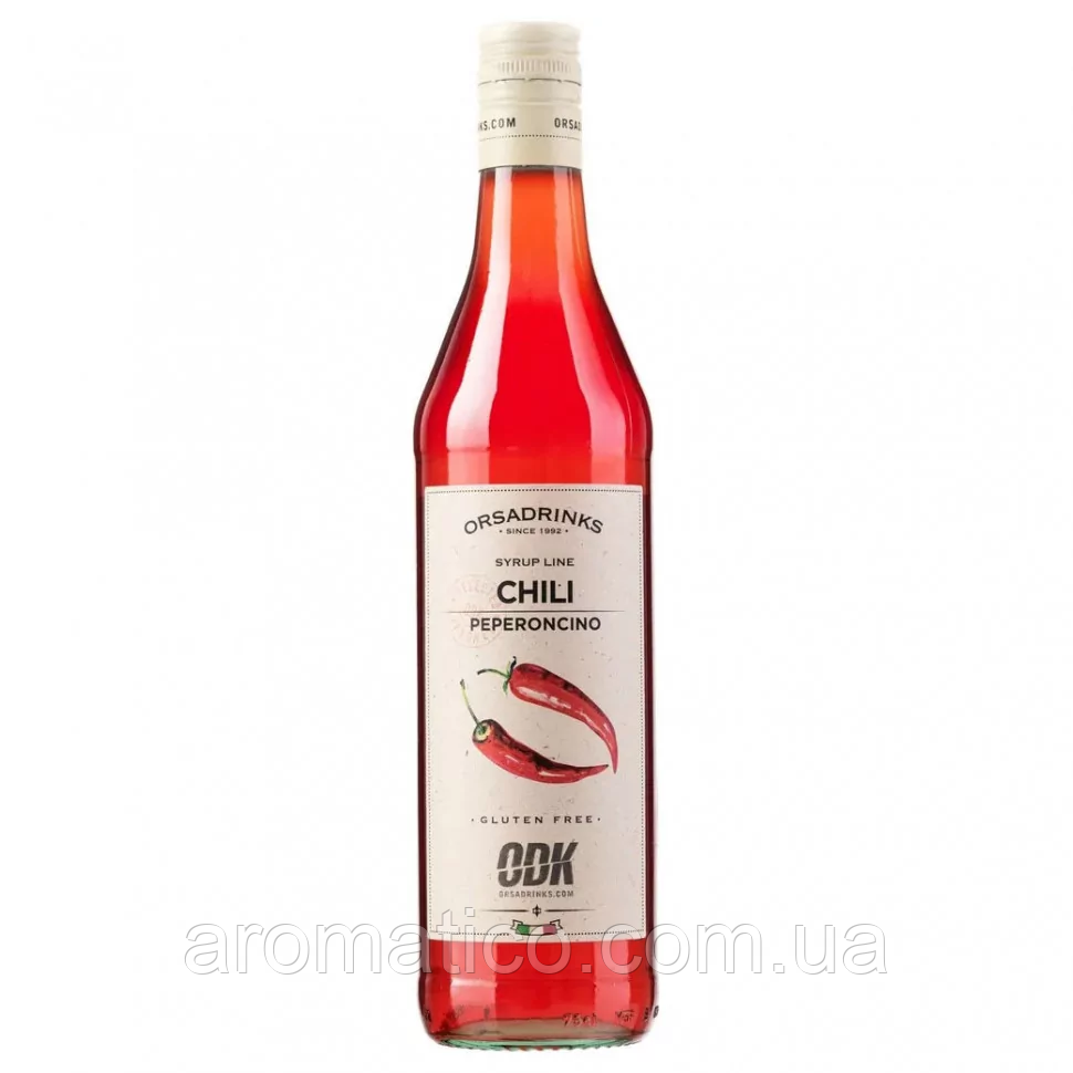 Сироп ODK "Чилі" має гострий, інтенсивний смак перцю чилі, який надає напоям пікантність і легке печіння. Він поєднує в собі яскраво виражену гостроту з характерним ароматом і може використовуватися в коктейлях, каві та десертах для надання оригінальності та здивування.